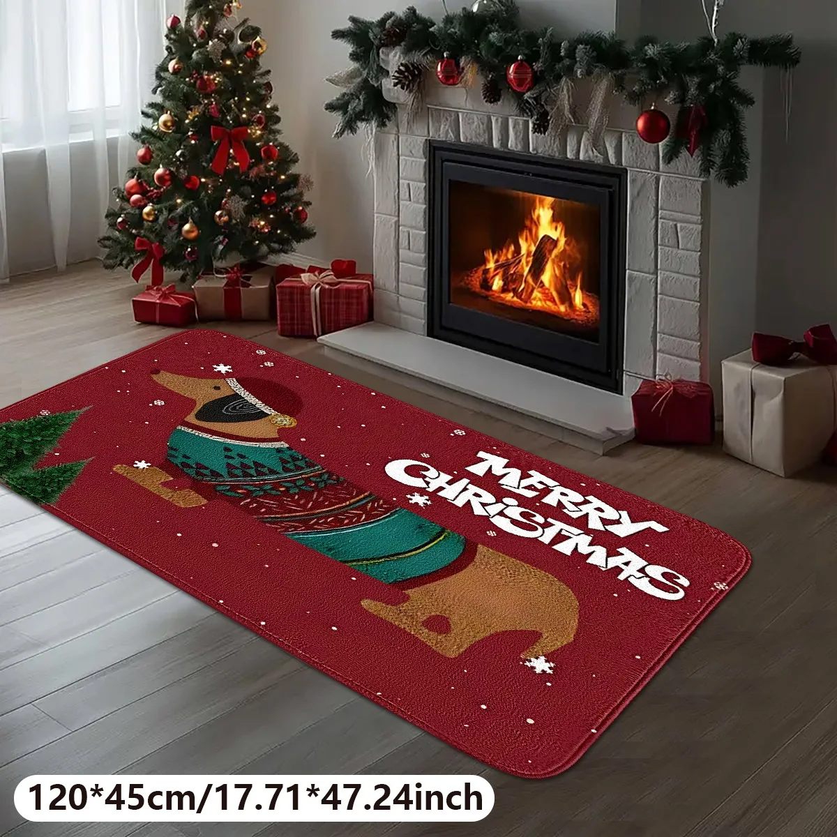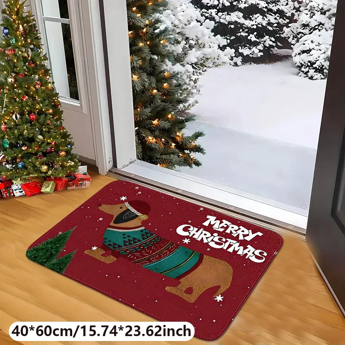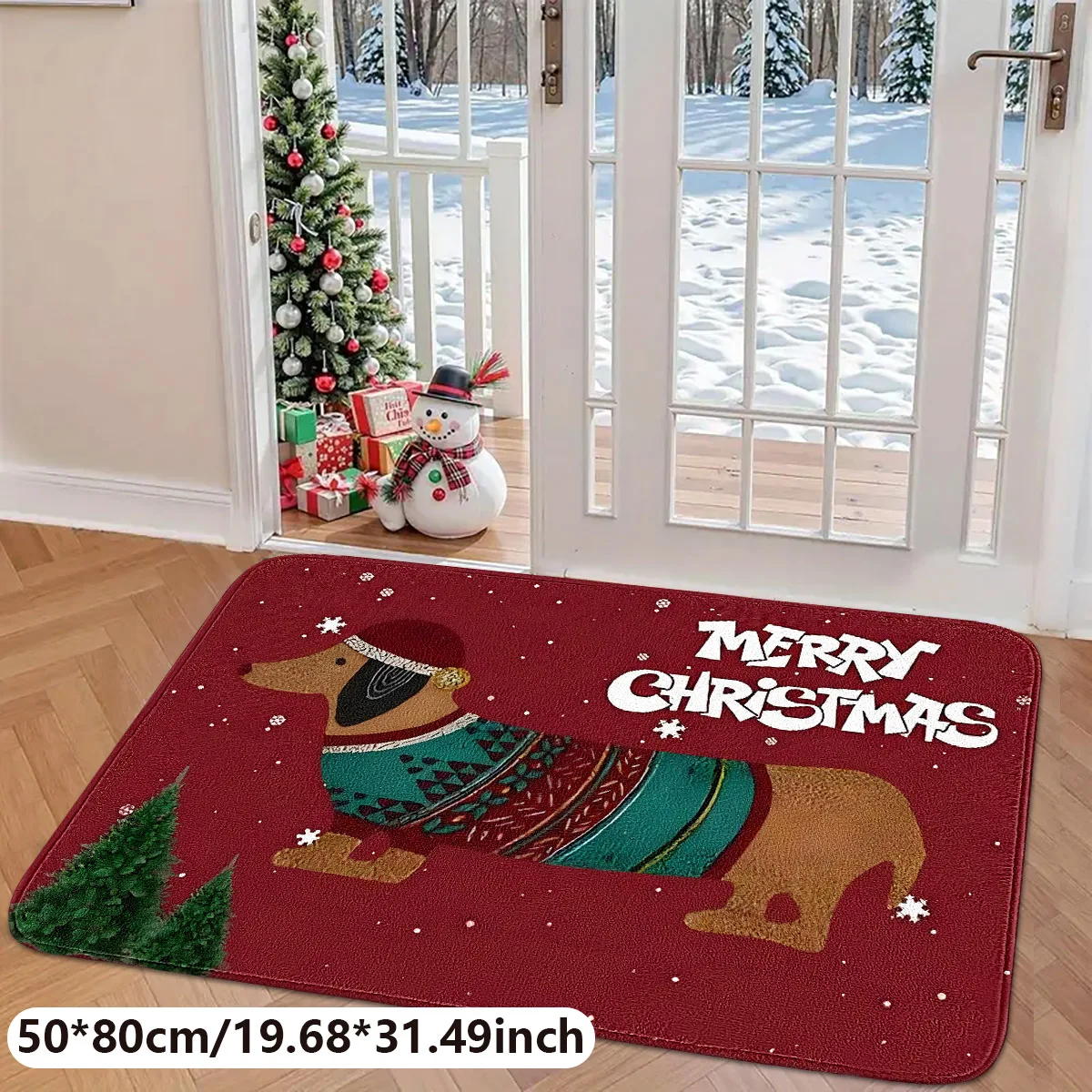 A Christmas style dachshund dog flannel non slip floor mat carpet