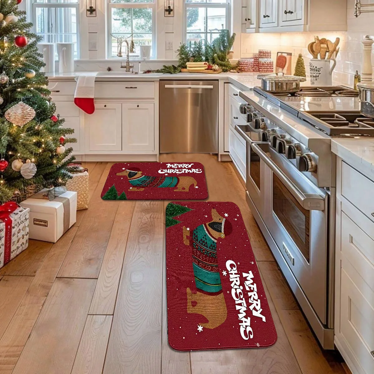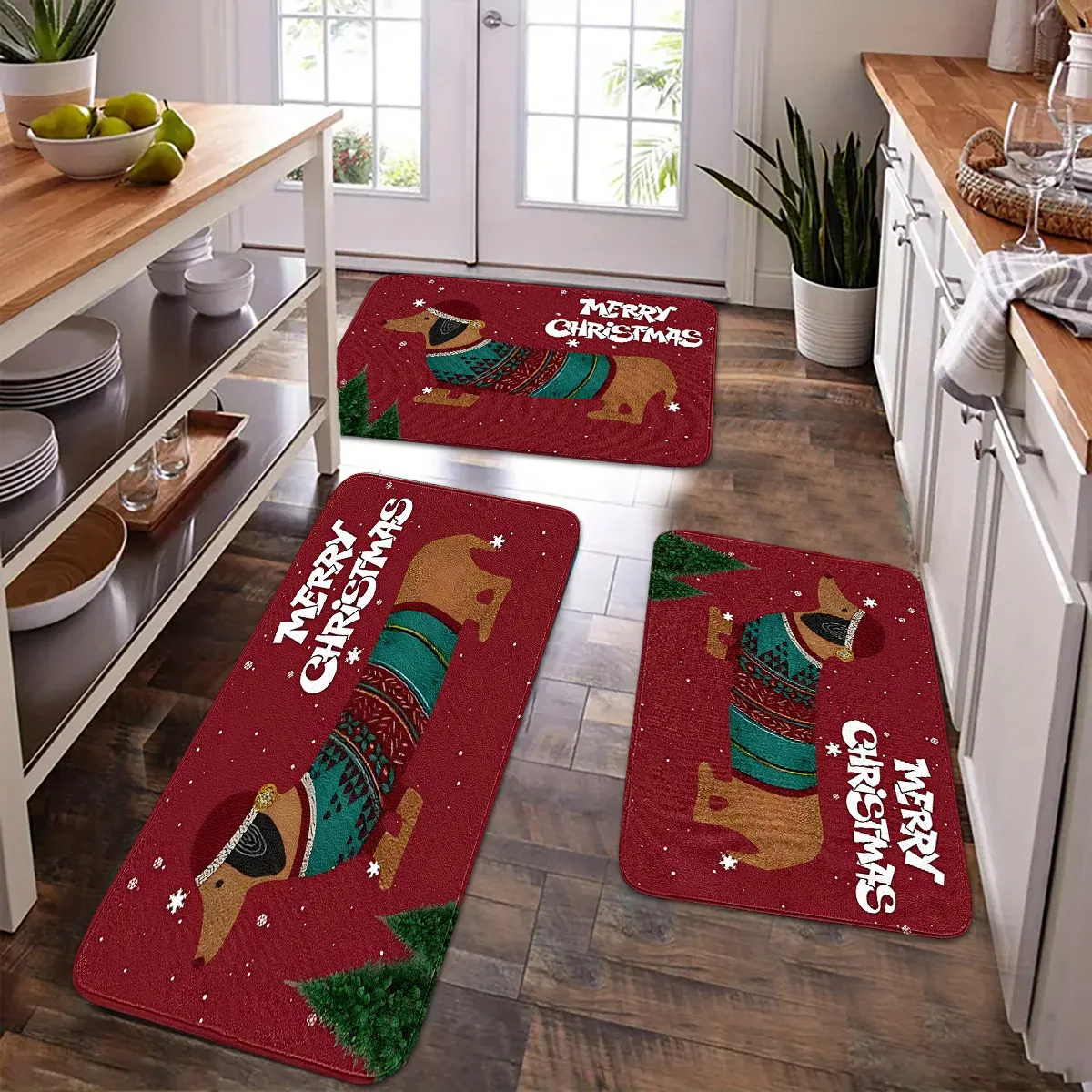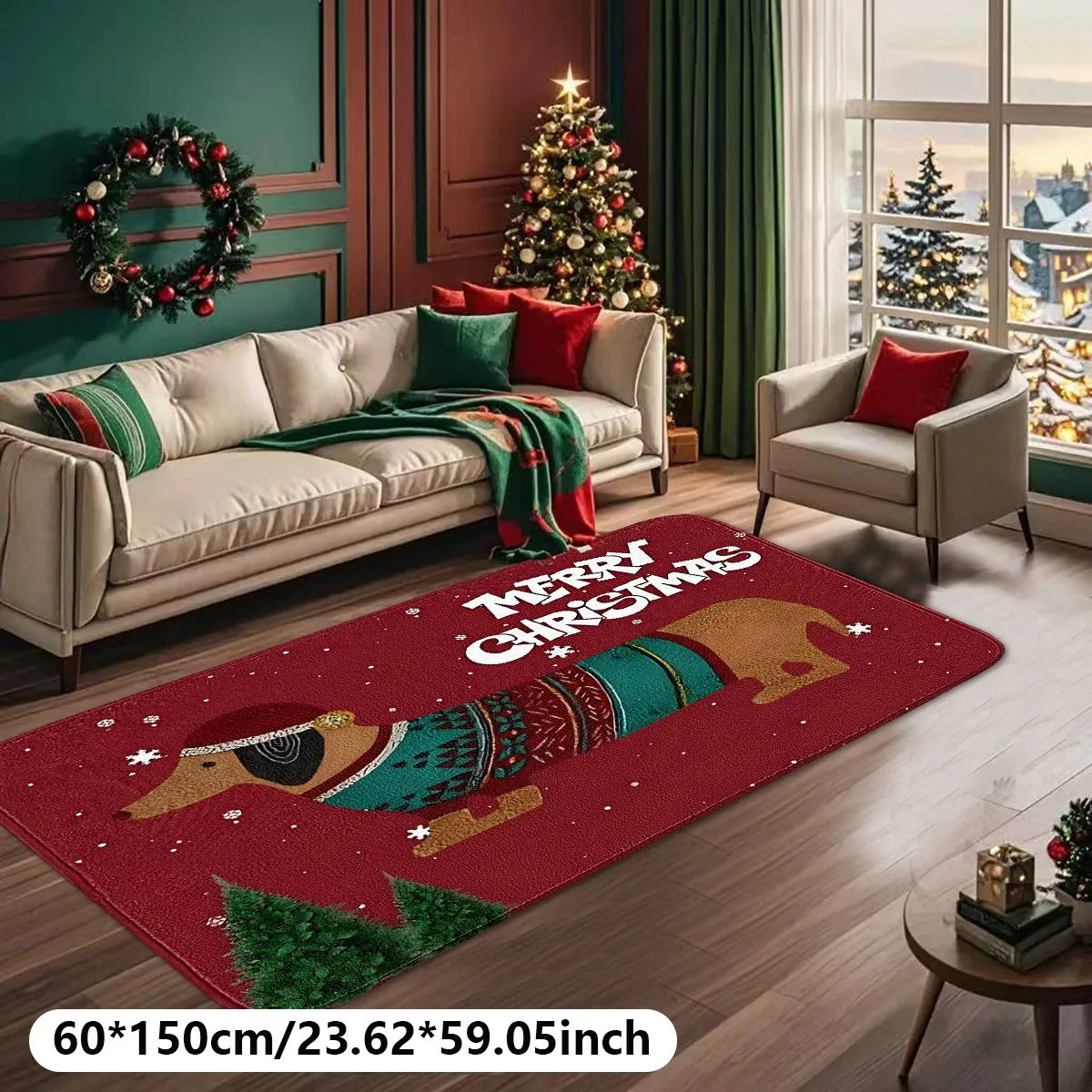 A Christmas style dachshund dog flannel non slip floor mat carpet