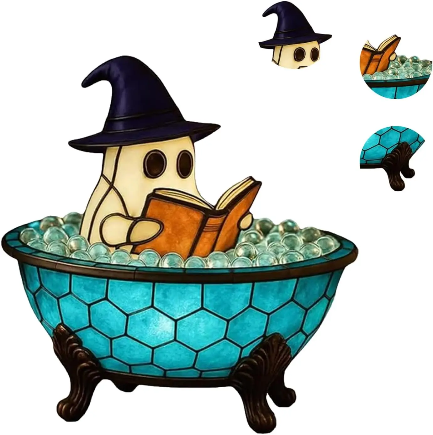 【Floating Bubble Illusion】Enjoy the magical floating bubble effect created by the built-in LED lighting. The whimsical bubbles shimmer and move, simulating a ghost taking a bubble bath, which adds a unique touch to your holiday or everyday décor
