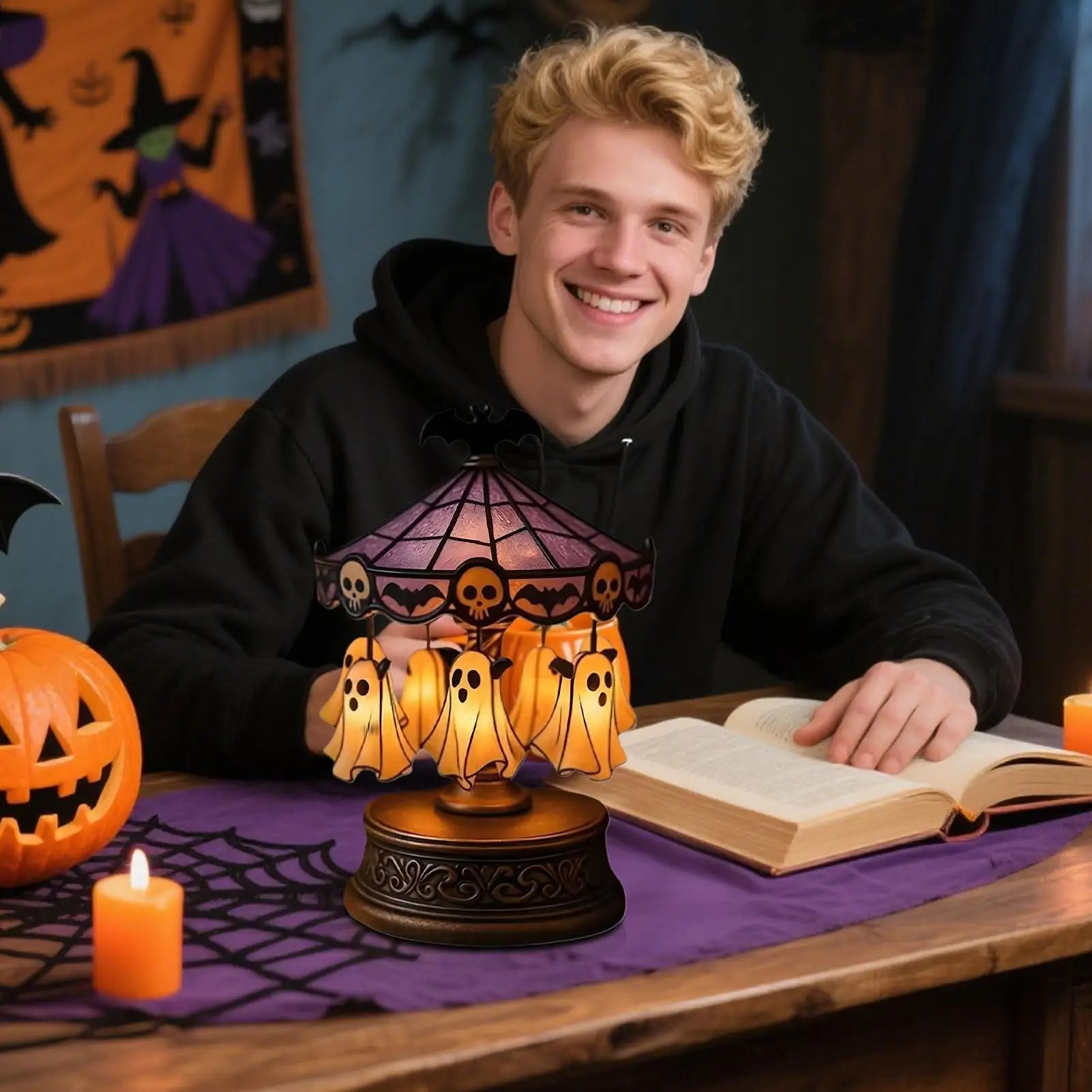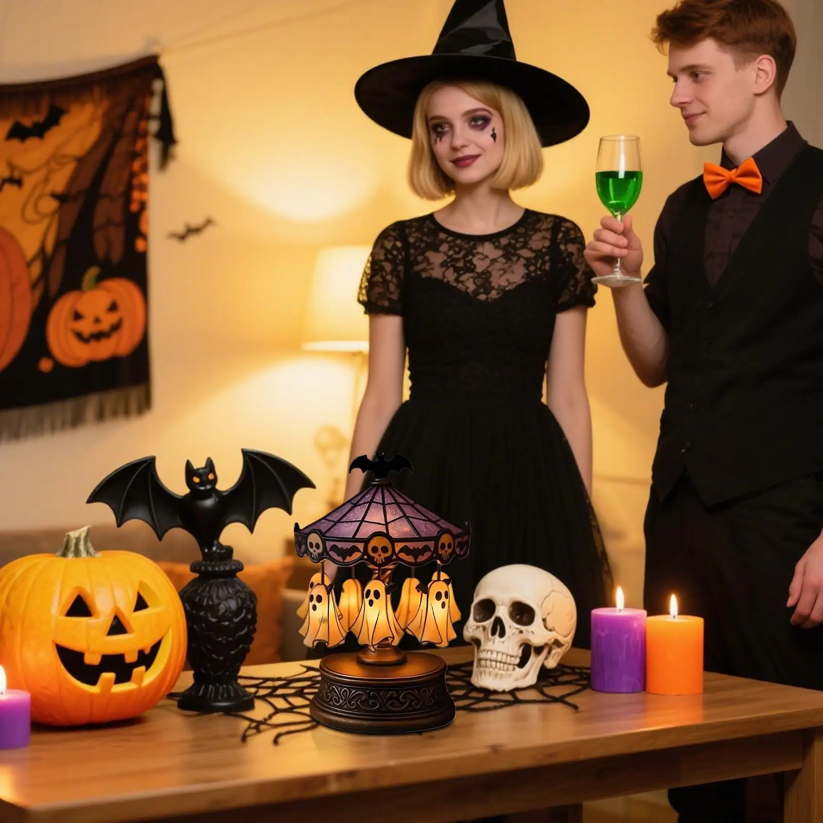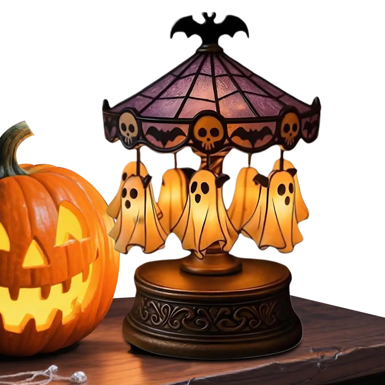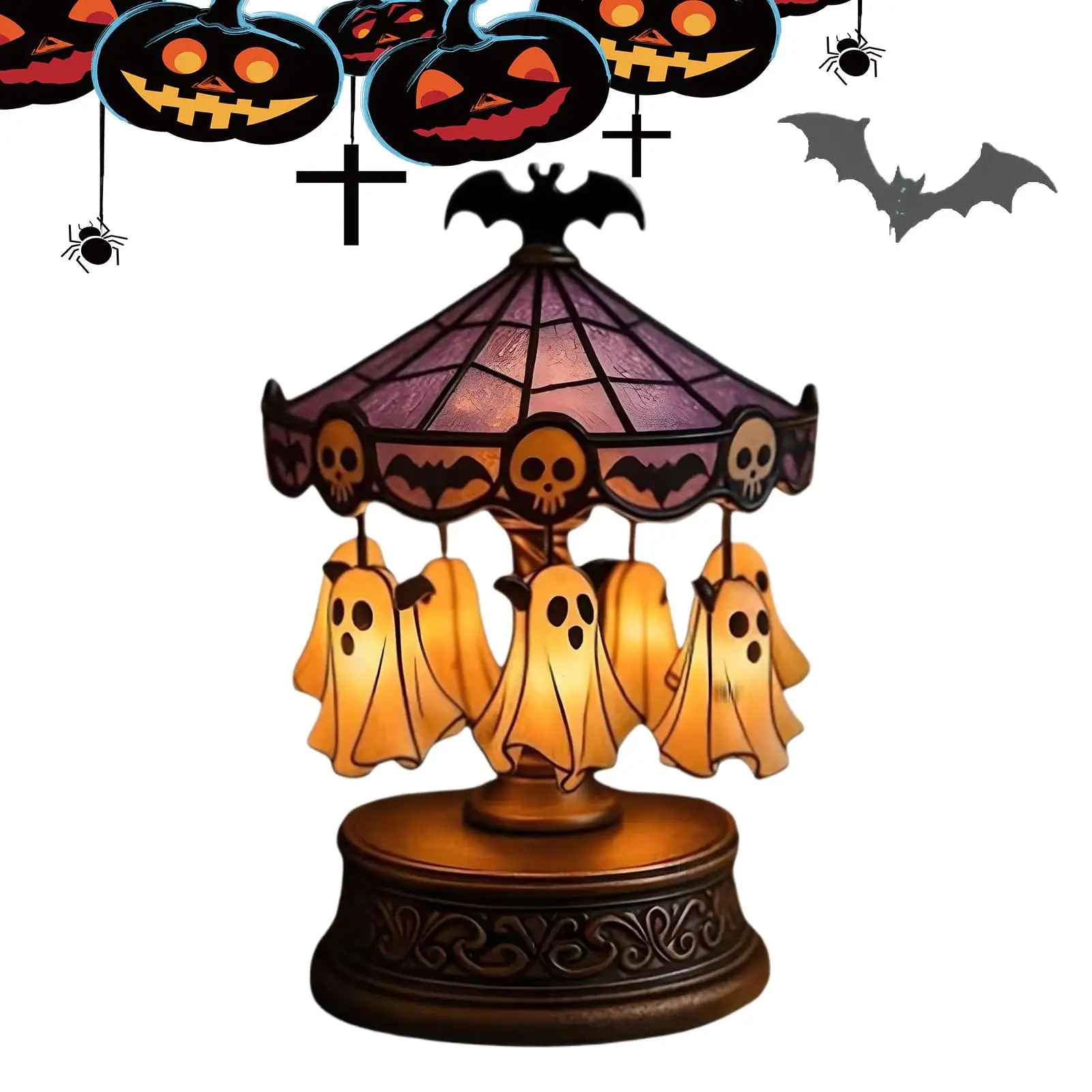 3.Authentic Halloween Display: Featuring ghost figurines in a carousel design, this decorative element captures the feel of Halloween with festive feel, creating captivating scenes and doubling as a shareable photo backdrop